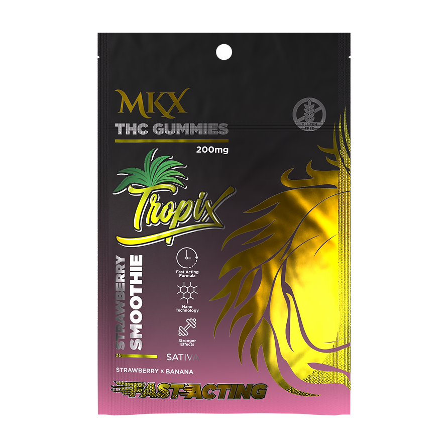 The MKX Strawberry Smoothie Gummies are a fruity, chewy treat designed to delight your taste buds with the sweet, refreshing flavor of ripe strawberries. Each gummy has been carefully crafted to capture that classic smoothie taste combining juicy berry notes with a smooth, creamy finish that makes them feel indulgent without being overly rich. They have a bright red-pink hue that visually echoes their strawberry essence, and their soft, pliable texture makes them satisfying to bite into, whether you prefer quick little chews or long, drawn-out enjoyment.